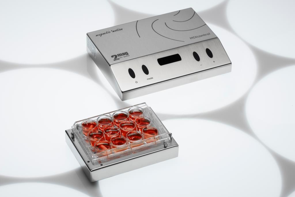 Ultraflacher, verschleißfreier 2mag Magnetrührer mit 12 Rührstellen, optimiert für das Arbeiten mit 12-well Mikrotiterplatten.